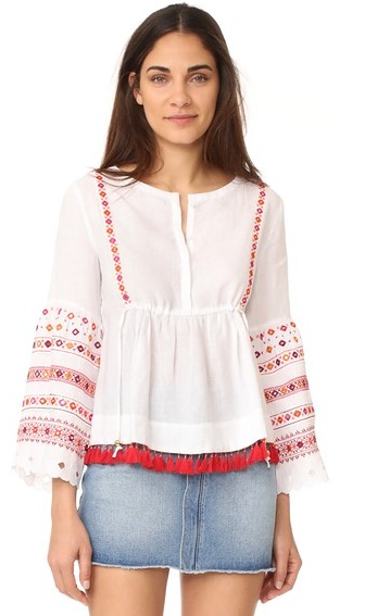 5) Club Monaco Goronah Top, $269: With boho blouses ruling the festival circuit, this linen top is a fashionable fit for the occasion. The red embroidery contrasts against the white fabric, while tassels and bell sleeves add a finishing touch.