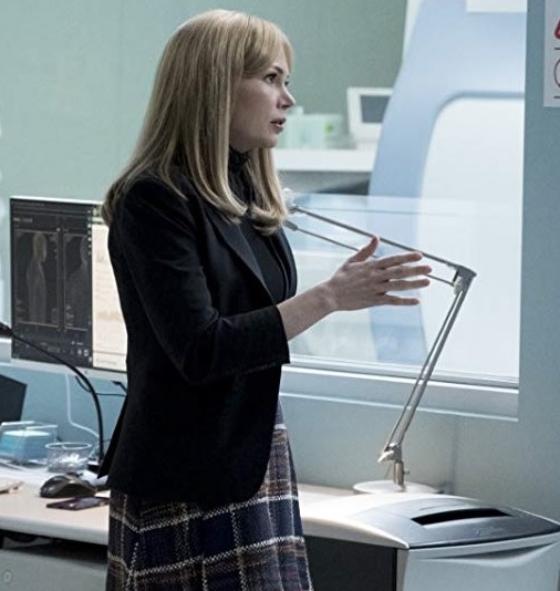 Get Michelle Williams’ Black Blazer And Plaid Skirt From “Venom”