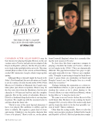CanaDian aCtor allan hawCo may be best known for playing Douglas Brown on the ad- venture series Frontier and private investigator Jake Doyle on Republic of Doyle, but the 40-year-old ac- tor is back in the spotlight with a new role. this time around, hawco takes to the screen as David slaney on the CBC miniseries Caught, which wraps up this spring.