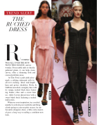 at tom Ford, a pale pink piece made a striking statement with its all-over ruching, fitted mid-length hem and power shoulders. Dolce & Gabbana unveiled a naughty take with its vampy, ruched black dress featur- ing Gothic vibes and a corset bod- ice, while Carven played nice with a sweet blush frock featuring a ruched midsection.