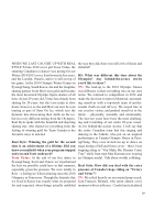 TV: The lead-up to the 2018 Olympic Games was different, in that everything was on our own terms. We returned to competition in 2016 and made the decision to train in Montreal, surround- ing ourselves with a top-notch team of profes- sionals (both on and off ice). We stayed true to our creative vision, and pushed ourselves to the limits – physically, mentally and emotionally. The last two years have been the most challeng- ing and rewarding of our entire 20-year career. As for behind-the-scenes stories, I will say that the entire Canadian team had fun singing and dancing to the Arkells, who put on an inspired performance at Canada Olympic House in Pyeo- ngChang. They even invited me up to dance on stage during a Hall and Oates cover – there I was bopping along to “You Make My Dreams Come True” while front man Max Kerman was wearing an Olympic medal. Talk about worlds colliding.