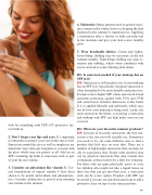 4. Moisturize: Many patients need to up their mois- ture content in the winter; however, keeping the skin hydrated in the summer is important too. Applying a moisturizer after a shower or bath can help seal in the moisture and give your skin a nice, healthy glow.