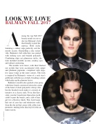The models were erce, with their blacked out eyelids that were accentuated with copper and platinum pigments, completed with nega- tive space wings at the outer corners. This look is inspired by Balmain’s vision of a rock star’s girlfriend, with the use of dark, brooding colours which play up the glamour factor.
