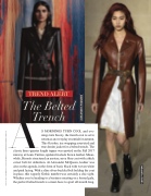 classic three-quarter length topper was spotted on the Fall 2017 runway at Louis Vuitton, updated in sleek brown leather. mean- while, Hermès structured an austere, navy blue coat with a thick corset belt for de nition. At Alexander McQueen, leather was also on the agenda, in the form of basic black with woven white and pink lacing. With a slim silver-buckled belt holding the coat in place, this vaguely gothic number was certainly a chic sight. Whether you’re heading to a business meeting or a formal gala, the perfect belted trench is a must-have to sport all month long.