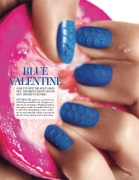 Get the LOOk: Apply one coat of base color (ZOyA robyn) and allow to dry. Cut up pieces of tulle into 2x2-inch squares. Working one nail at a time, apply a second coat of polish, allow it to set for 20 seconds, then rmly press a piece of tulle into the semi-wet polish. Add top coat to smooth the look, or leave sans top coat for extra texture.