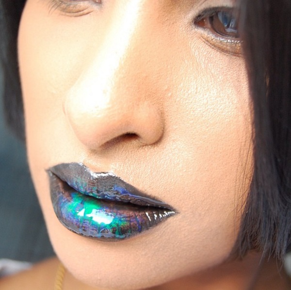It may not be an everyday look you can rock at the office, but it’s certainly a dramatic trend that can transform your daytime nude and blush pink lips into a vampy, glamorous evening statement. For makeup mavens aiming to embrace an oil slick pout, here is a closer look at the latest bold makeup trend.