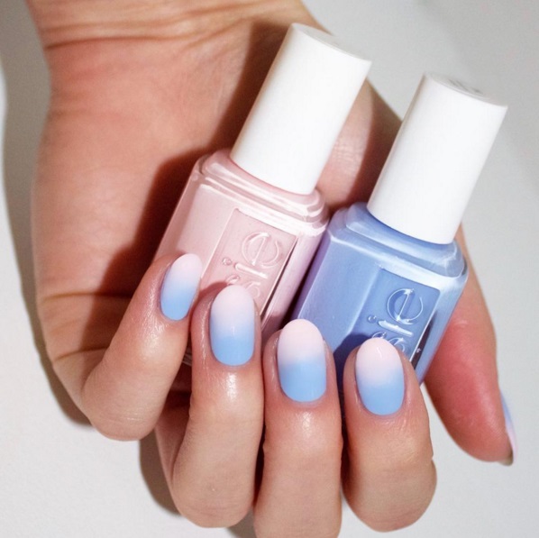 1) Pastel blue and pink ombre tips: Rock Pantone’s colours of the year with this sky blue and bubble gum pink ombre nail look. The light hues complement each other and with its gradient design, it gives your talons a soft finish. To achieve this look start by painting the nails a sky blue-lavender shade and once dry, layer a pastel pink lacquer colour on top and lightly buff the edges with a makeup sponge to blend the colours together.