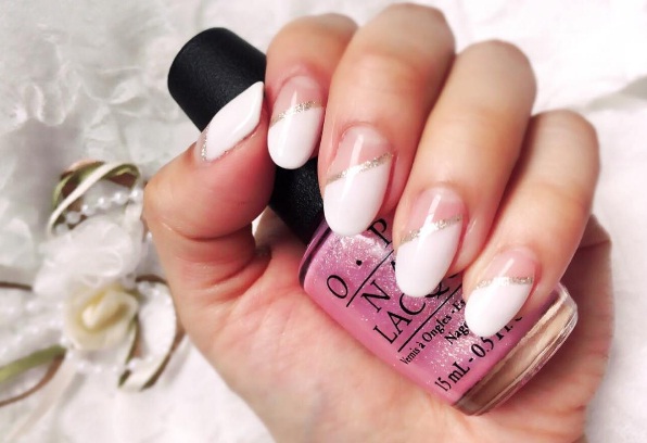 Staying true to its name, the diagonal French features nail polish applied on an angle for a cool, quirky effect. While some takes on the trend involve a thin angular tip, other variations feature a thicker line of polish applied across the nail’s surface.