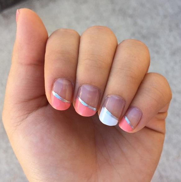 Manicure maniacs are embracing the trend with shades of snowy white, coral and pale pink, with thin lines of silver offering a metallic effect. If you’re looking for an easy summertime manicure which doesn’t involve complicated nail art or precision, diagonal nails are also relatively simple to create. Unlike a traditional French manicure, there is no pressure to craft a perfectly straight line across the top of the fingernail.