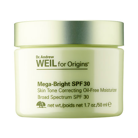 5) Origins Dr. Andrew Well For Origins Mega-Bright SPF 30 Skin Tone Correcting Oil-Free Moisturizer, $62: Known for clinically proving skin brighter and restoring luminosity, this moisturizer is said to be a protective daytime SPF moisture repairing formula addressed to help facial discoloration. Claiming to work for all skin types, the SPF 30 blocking UV damage will help to prevent future spots from forming on the face.