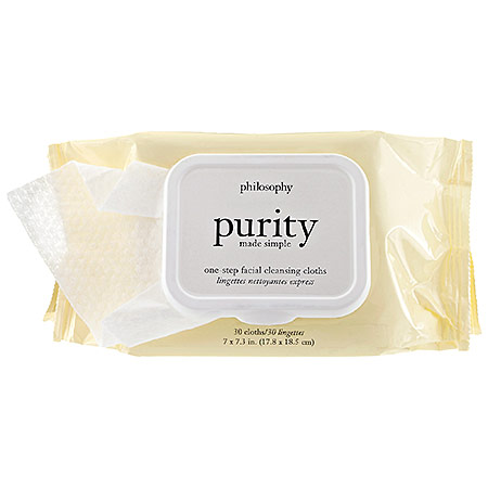 philosophy Purity Made Simple One-Step Facial Cleansing Cloths, $20: These easy-to-use, soft facial cleansing cloths are said to wash away any sort of dirt, makeup or oil, and are also ideal for any skin type. The convenient pack of 30 wipes will fit simply into any sort of makeup bag or backpack.
