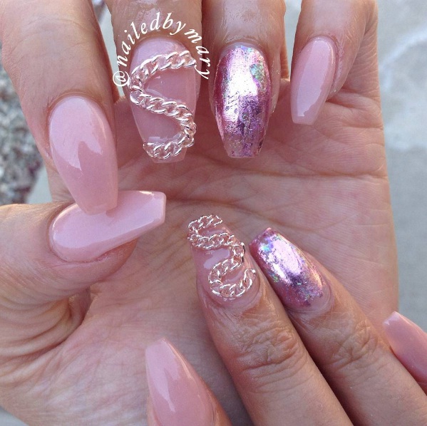 The chains can also work as a standalone accessorizing look, with other nail enthusiasts choosing to adorn their fingertips with just a couple of these pieces. Whatever you prefer, it’s clear that a chain-studded manicure is as tough as nails- and possibly a much-needed break from the season’s girlish fingertips!