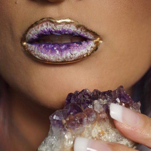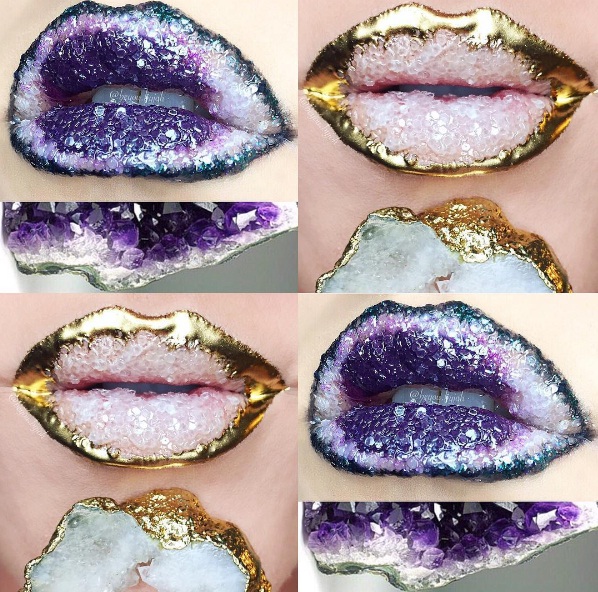 From shiny multicoloured lips to more intricate lips inspired by amethysts, gemstones play a major role in this arresting, fierce new beauty trend. Often paired with gleaming metallic lipstick, crystal lips are set to elevate your usual makeup regimen.