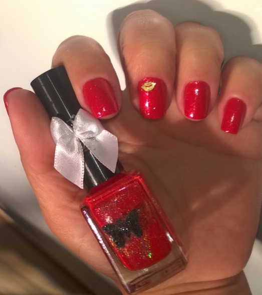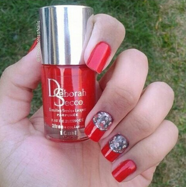 Add sparkle for a Friday night take on the red manicure: For the after hours, nothing dazzles quite like glittering red nails which are bedecked with metallic detail. From subtly sparkling polish to tiny gold accents, breathe new life into your Aurora Red nails with a hint of glitz and glamour.