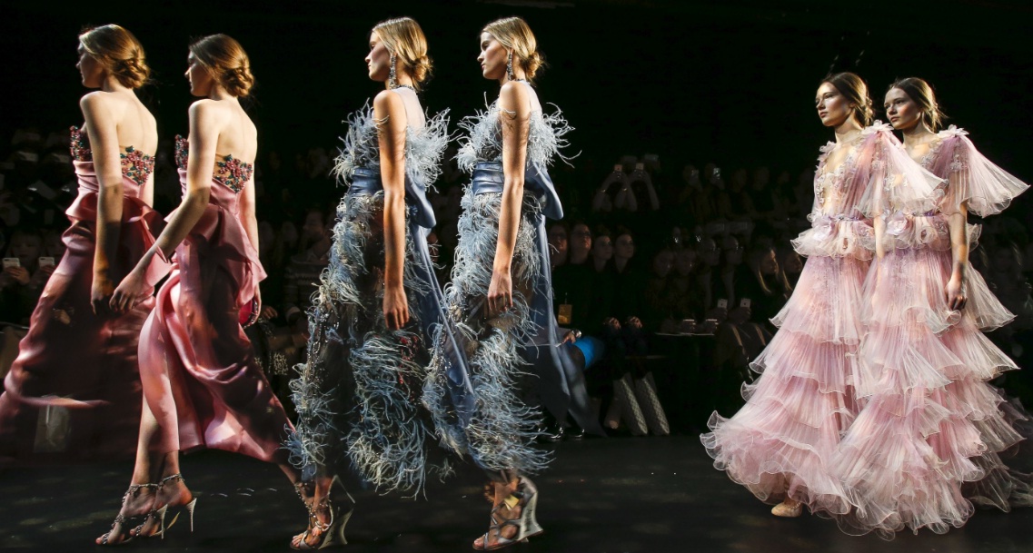 At Marchesa, the must-have knot was transformed into a glamorous, graceful hairdo for the evening hours. If you’re attending a formal function, try sporting a similar look with a middle part and loosely pinned back locks. A gorgeous low chignon with effortlessly pinned-back strands will surely complete your night out beauty statement.