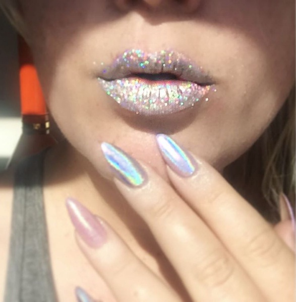 Beauty lovers are quickly bringing the trend of holographic nail art onto their lips, by painting their pouts with iridescent sparkle. Holographic lipstick is ruling social media, and quickly making an appearance with its various shades. From the faintest hints of glittery lavender and pale pink to deeper berry tones, this new lipstick fad is all the rage.