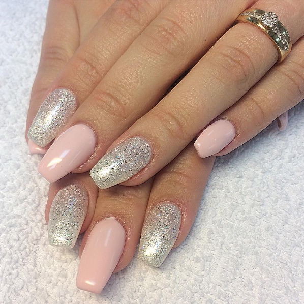 Contrast pale pink talons with sparkling silver: Prepare for New Year’s Eve beauty in true ladylike form, with intersecting long nails painted with blush pink polish. Meanwhile, long frosty silver nails impart a wintry, sultry effect and are sure to seize the party spirit in the air.