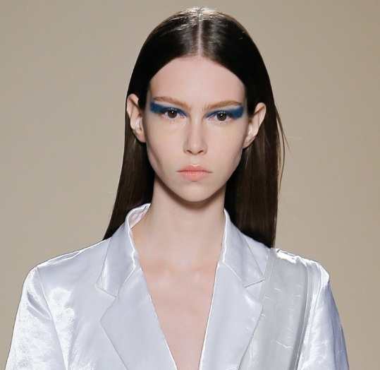At Victoria Beckham, winged dark blue eyeshadow also caused a sensation, and was applied straight across the eyelids. Against a flawless complexion, natural-looking brows and neutral lips, the fierce blue eyelids caused a sensation and brought an otherwise no makeup look to life.