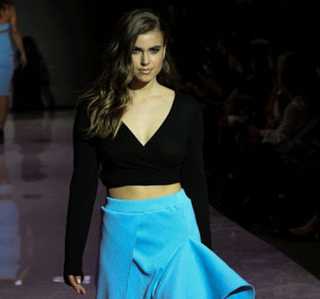 Designer Rachel Sin stayed true to pastels for her Spring 2017 and Fall 2017 combined collection, so the featured girlish beauty look was entirely appropriate. Hair was effortlessly tousled and slightly sexy, with side-parted waves tumbling over shoulders. For a complementary feel, smokey eyes, bronzed skin and au naturel lips offered a sophisticated visage with understated beachy vibes.