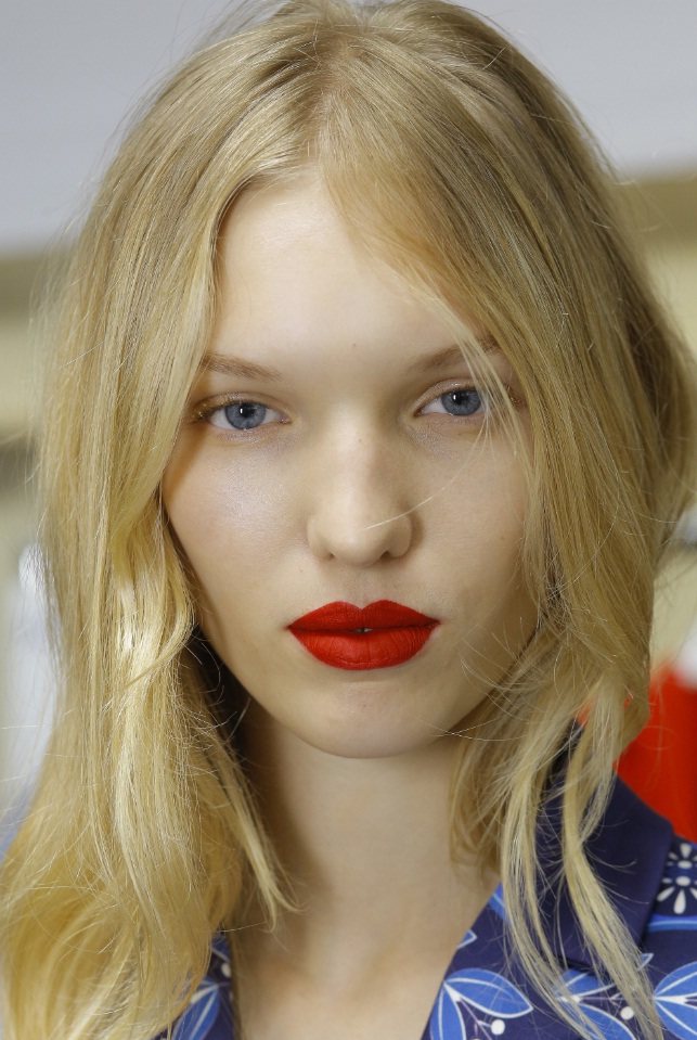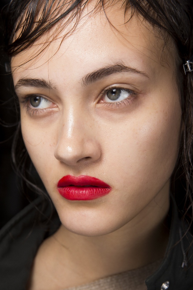 At Mary Katrantzou, a striking scarlet lip was accompanied by boyish brows and au naturel skin. Meanwhile, Simone Rocha debuted a punchy cherry-coloured lip, which stood out against an otherwise no makeup look. At Creatures of Comfort, toned-down red lipstick was paired with softly blended rosy blush, for a fresh-faced glow.