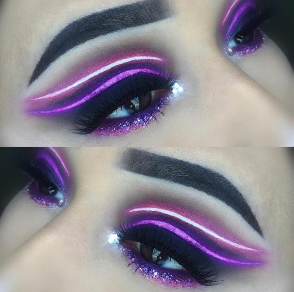 Accented with glow-in-the-dark streaks of colour, the neon makeup trend steals the spotlight with its brilliant shades. The swirls of pigment and strategically arranged sparkles can instantly attract attention. Truly not a look for the minimalist, neon eyes can be either tragically overdone or arresting and intense. In fact, some beauty lovers are turning to sweeps of brilliant violet shadow over the eyelids, while others are turning to hints of neon yellow.