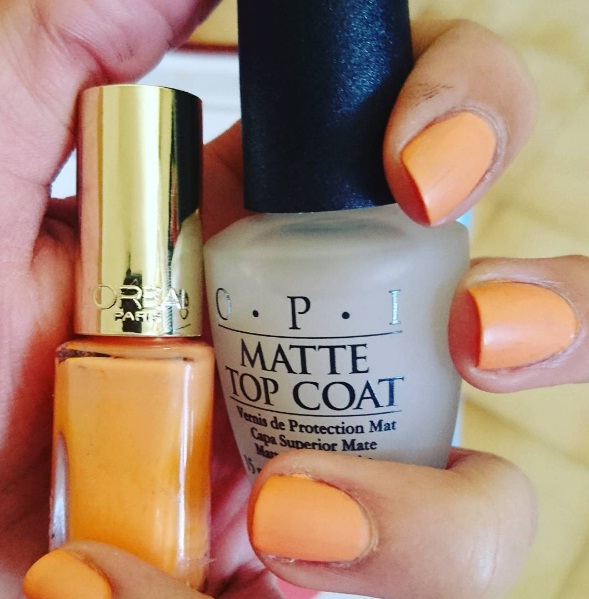 For a more simplistic take on the tangerine nail, stick to solid painted fingertips with a clear top coat. The sleek, smooth finish is a suitable look for the upcoming warmer temperatures of spring. Meanwhile, the minimalist effect prevents the brightly coloured nails from appearing too garish or over-the-top. If you want to avoid sparkle, shimmer and nail art but like the look of orange hues, soft tangerine polish just may be your solution.