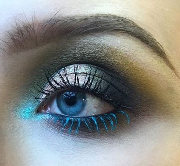 If you prefer artistic eyes and exaggerated colour, shade in your eyelids with a blend of turquoise, yellow and mauve shadows. To complement your vibrant smokey eye, skip the eyeliner and emphasize your top lashes with a simple coat of black mascara. Next, accent your lower lashes with light blue mascara, for an arresting contrast which can catch the light.