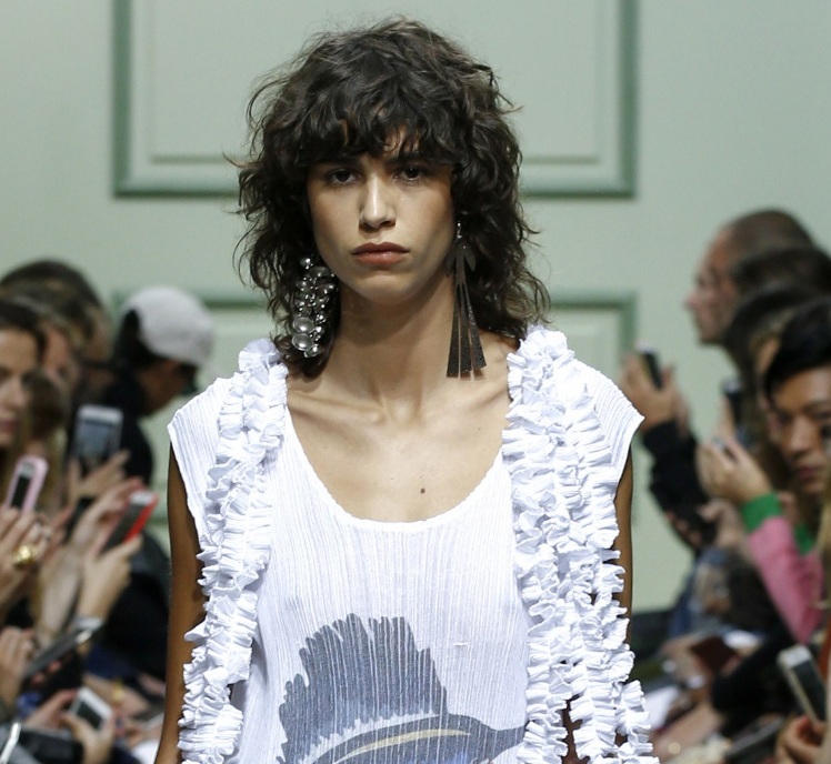 At Mugler, models’ locks were expertly centre parted and complete with loosely wavy tendrils that were tucked behind the ears. The J.W. Anderson catwalk unveiled a cropped, delicately curled ‘do with edgy front bangs and plenty of volume near the crown. Meanwhile, Altuzarra turned to pushed-back hair which was styled firmly in place, and juxtaposed against stringy tendrils which snaked past the shoulders.