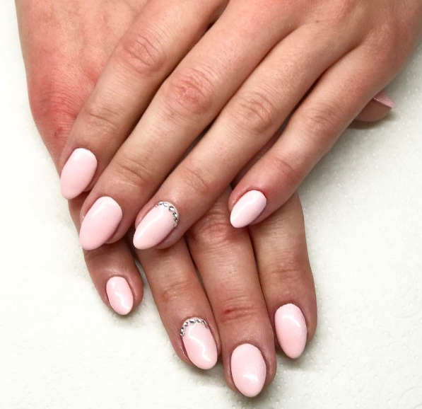 Think pink for a change from white nails: For the trendsetting bride who wants to defy convention and introduce colour into her look, there’s nothing quite like a hint of pale pink. With Spring 2017 featuring an endless selection of pastel nail colours, blush-coloured fingernails can contrast beautifully against a bridal gown. Almond-shaped pink nails dotted with tiny crystals also prove that tasteful bling is always en vogue for a wedding manicure.