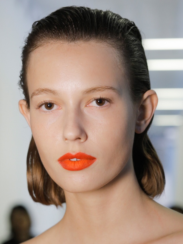 At Jason Wu, tangerine lips reigned supreme, with the pastel orange tone lighting up a bare visage. If you want to sport a similar punchy shade, stick to a single coat of mascara and moisturized, fresh skin. Paired with minimalist eye makeup and a youthful, healthy complexion, the orange lips instantly brought images of Popsicles to mind. Suiting the season, take your beauty cues from the iced summertime treat, and prepare to light up backyards everywhere with your smile.