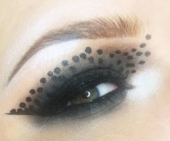 Also known as dotted eyeliner, the look of polka dots can easily bring a vampy touch to your usual eye makeup. If you’re a fan of moody dark tones, try outlining your eyes with a strategic scattering of tiny black dots. Arranged around the upper eyelid, dark eyeliner dots can transform you from an everyday beauty to a rebellious vixen. Meanwhile, adventurous makeup lovers can turn to dark grey eyeshadows, in order to create the perfect smokey eye.
