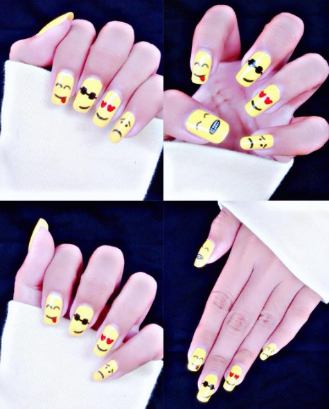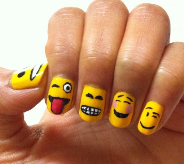 From longer talons to short and square tips, emoji nails can easily be either sexy and chic or versatile and casual. Just remember to place the emphasis on creating detailed emoticon faces, whether your current mood is party-ready, mellow or content. With summertime’s colour palette already pointing toward brilliant yellows, emoji inspired manicures are certainly right on trend.