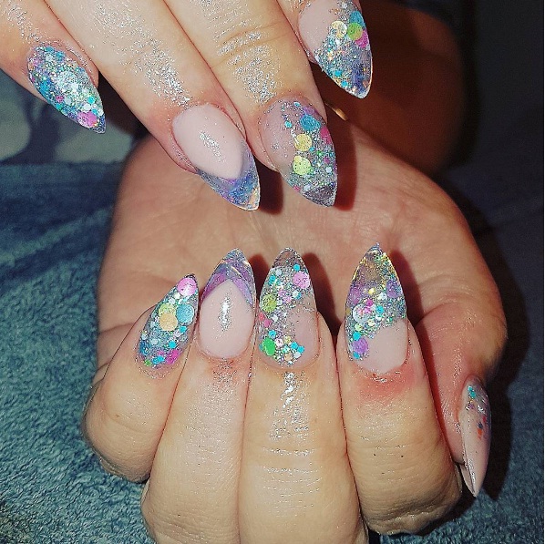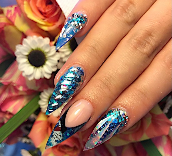 According to Popsugar, these nails are meant to create the effect of shattered glass. The fire and ice manicure is sure to catch the light, with their iridescent sparkle and soft shades of pale blue. On Instagram, some examples of the trend involve sharp, pointed almond tips, while others involve shorter lengths. Either way, the fire and ice fingernail makes a splash with its sequins, glitter and beadwork. Meanwhile, eye-catching shades of blue and white bring an icy cool effect to the overall mani.