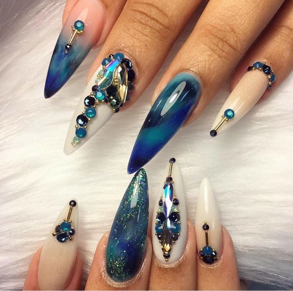 If you’re wondering whether this rising nail fad is suitable for you, take a look at these various takes on the trend. For the ice princess who wants to rock bejewelled fingertips, fire and ice just may cool down your summertime beauty this season.