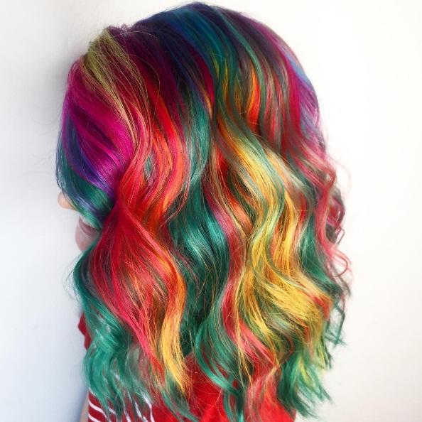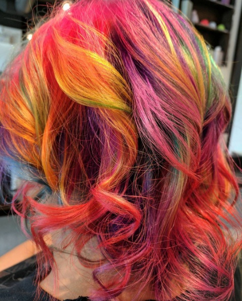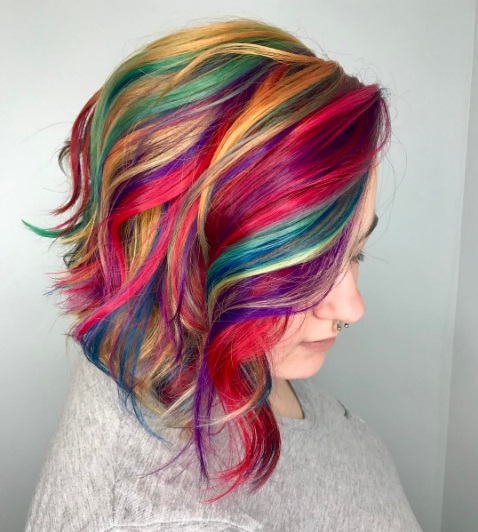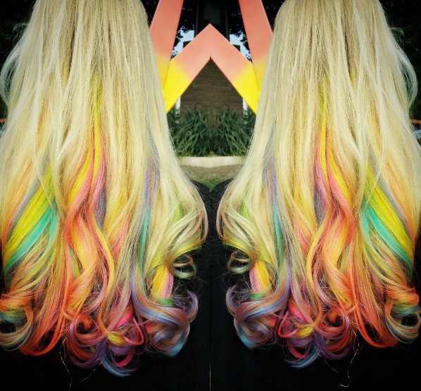 According to PopSugar, the beauty trend was popularized this summer by Vancouver hairstylist Amanda Glikes. With an infusion of bright yellow, violet, red and green strands, the final product instantly brings a bowl of kids’ cereal to mind. While this particular example of the trend featured carefully blended locks, other examples involve deliberate neon streaks, bold splashes of colour and even dip-dyed ends.
