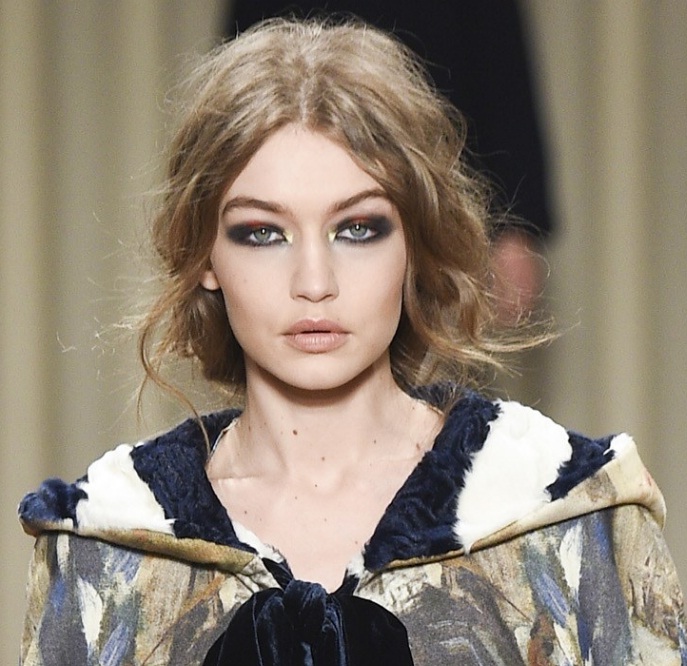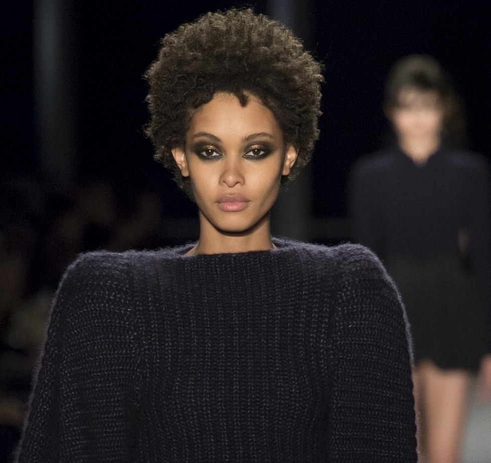 The rich metallic hues at Brandon Maxwell certainly usher charm and warmth into fall makeup trends. We are loving this beauty look, which features shades of dark gold and charcoal eyeshadow, all blended into a soft smokey eye. For a finishing touch, contoured cheekbones and a neutral or nude lip colour help to seal the deal.