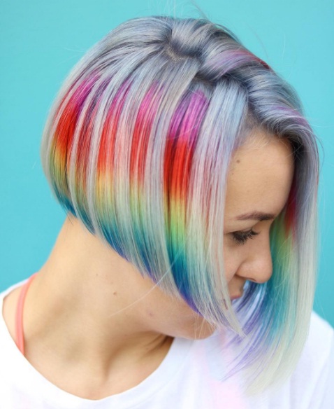 From streaky, watercolour-toned highlights to broad red, yellow, green and blue chunky streaks, prism-like hair colour can set the stage for your new ‘do. This fierce rainbow style is particularly popular among hair chameleons who are rocking cropped, sassy bobs. If you need further evidence, simply glance at these examples of the trend from Instagram.