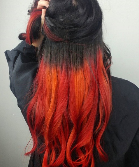Red and orange streaks: We wouldn’t recommend this as a lasting colour choice if you work in the corporate world, but temporary fiery hues can instantly brighten your mane. Turn to hair mascara or wash away colour in shades of red and orange, for a quick way to refresh your dark tresses. The look of flame-hued streaks is suitable for a bewitching look at your Halloween festivities.