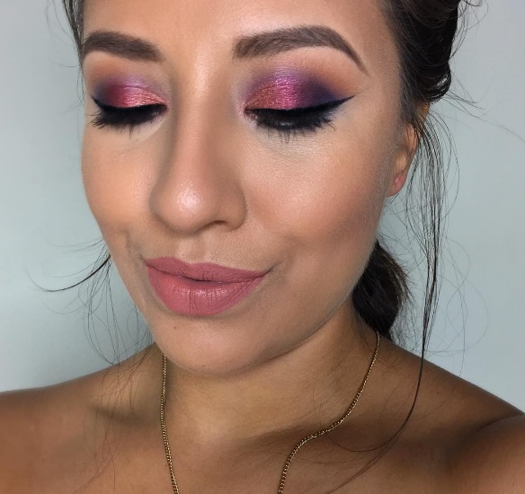 Shades of smudged purple and pink: If you’re wondering how to achieve colour with a slight over-the-top finish, turn to the colour of royalty as your inspiration. Try shadowing your eyelids with smudges of carefully blended violet, plum and copper. The bold eyeshadows help to emphasize your eyes, and also bring the attention to an olive complexion or darker features.