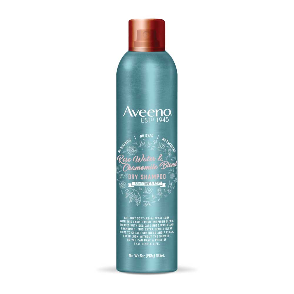 Aveeno Rose Water and Chamomile Dry Shampoo ($9.43): A gentle farm-fresh inspired shampoo blend infused with rose water and chamomile formulated for sensitive scalps and soft hair. Aveeno Rose Water and Chamomile Dry Shampoo will absorb grease and oil, leaving hair looking refreshed and feeling soft.