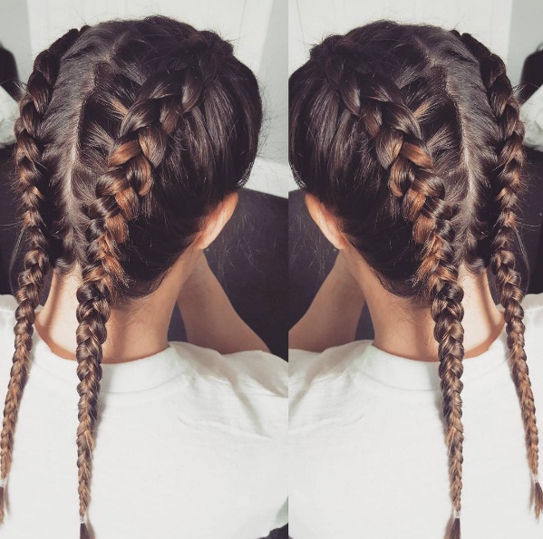 While we’re familiar with the mermaid inspired side braid at this point, the latest braiding trend doubles the fun with two plaited pigtails. Known as double dutch braids and sometimes referred to as boxer braids, this hairstyle is quickly replacing bohemian waves as a hot trend.