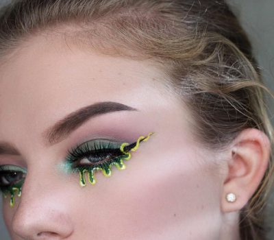 With Halloween spirit in the air, makeup lovers will soon be trading their usual flawless visages for vivid neon colours and gruesome face paint. If you’re not quite ready to sport a full face of zombie makeup, slime inspired eyeliner may be a beauty look to rock this season