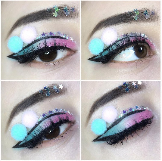 Quickly making waves on Instagram, pom-pom makeup features boldly adorned eyelids. Decorated with none other than the fuzzy materials, these eye makeup looks are certainly not for the minimalist.
