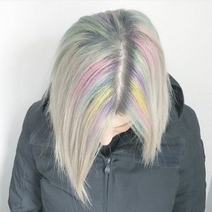 With all manner of beautiful pastel hues making a splash for Spring 2017, the entrance of holographic hair is hardly a surprise. After all, shimmer and colour seem to in demand for the season ahead. Staying true to the hair trends of springtime, holographic locks feature a chrome inspired effect.