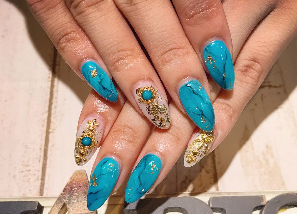 If you’re ready to jump into the pool or sun on the beach, you may want to draw your beauty inspiration from the lush blue and green tones of the aquatic world. Just in time for summer, turquoise, teal and light blue manicures can be spotted on the fingertips of beauty lovers just about everywhere.