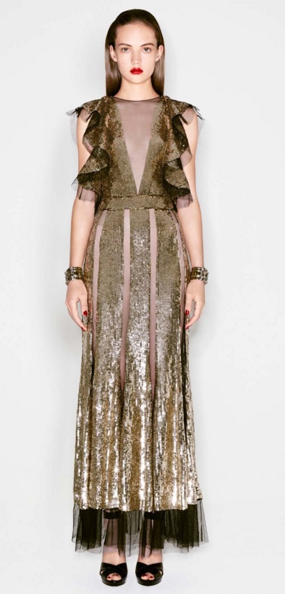 Key Looks: Retro inspired designs, shimmering metallics and sheer detail