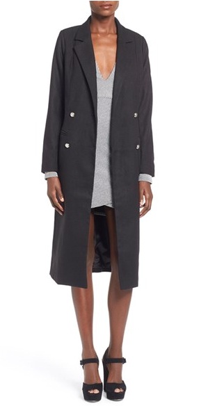 2) Missguided Military Coat, $186: The look of a three-quarter length black coat brings a polished effect to your airport ready sartorial statement. This military style topper makes a splash with its gleaming metallic buttons and double-breasted silhouette.