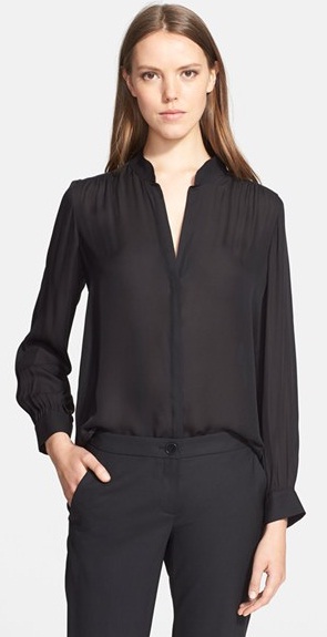 1) L’Agence Band Collar Silk Blouse, $480: With its ladylike V-neckline and delicate collar, we are liking this black silk blouse by L’Agence.