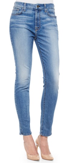 2) Jen7 Skinny Laguna Jeans, Light Blue, $195: Try showcasing your silhouette in light blue skinny denim for a contrasting effect against your dark blouse. These skinny jeans by Jen7 make a splash with their faded wash, slight whiskered detail and form-fitting style.