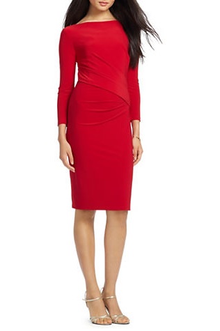 2) Lauren Ralph Lauren Jersey Boat-Neck Dress, $160: If you’re ready to rock jewel tones as the mercury drops, step into this brilliant red number by Ralph Lauren. The boat neckline and fitted three quarter sleeves help to balance out the curve-hugging silhouette, while the pleated detail brings visual interest to the look.